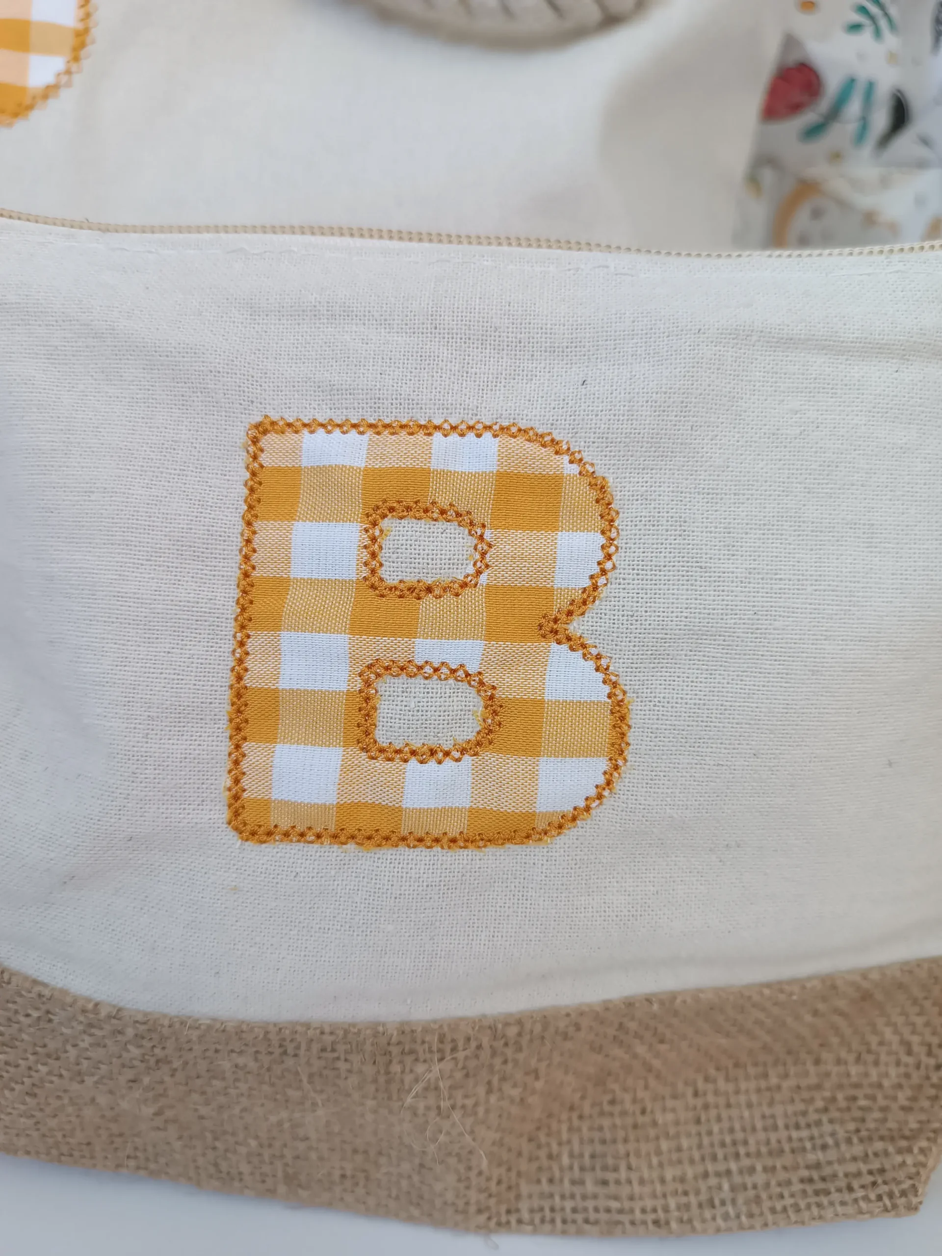 Neceser personalizado con inicial de vichy consida en forma de aplique